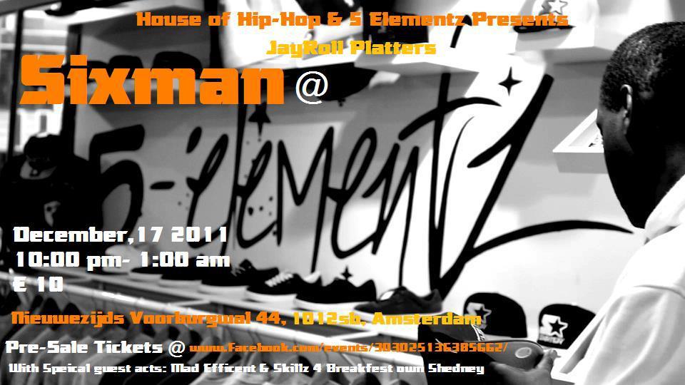 Op Zaterdag 10 December geeft DJ TLM i.s.m. House Of Hip Hop een masterclass in 5 Elementz in Amsterdam. De masterclass bestaat uit een aantal onderdelen en duurt van 1300-1600 uur.